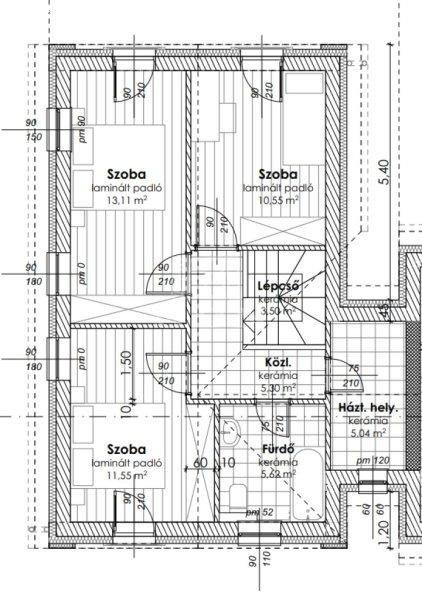 m2? Lépcső 3,5 m2Kert: ? 357 m2? 2 db. autóbeállóMűszaki paraméterek ?