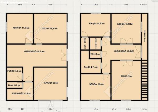 összesen 4 szoba,2 konyha, 2 fürdőszoba, kazánház,garázs található - az épület
