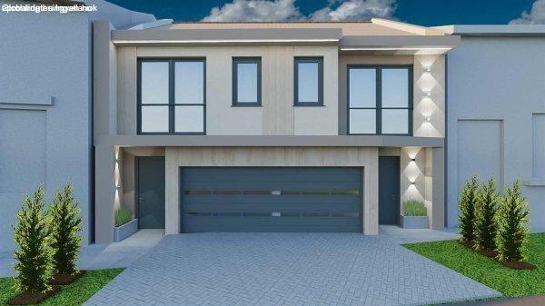 Családi házak rovaton belül a(z) "Kiemelkedő energia hatékonyságú, új építésű, belvárosi iker" című hirdetést látja. (fent)