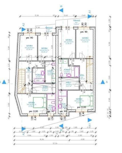 megközelíthető. alsó szint 63m2 garázzsal, felső szint 60m2.telek. 150m2N+F