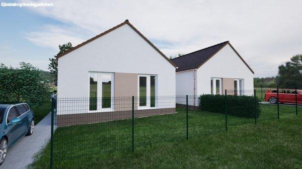 Családi házak rovaton belül a(z) "Eladó 90m2-es Ikerház, Csörög" című hirdetést látja. (fent)