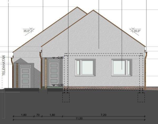 Porotherm tégla falazattal+12 cm grafitos dryvit szigeteléssel készül. A