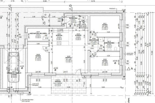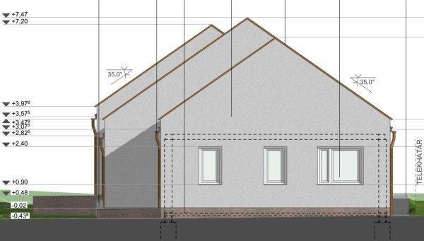 mellékhelyiség, előszobából is megközelíthető garázs, az emeleten négy szoba,
