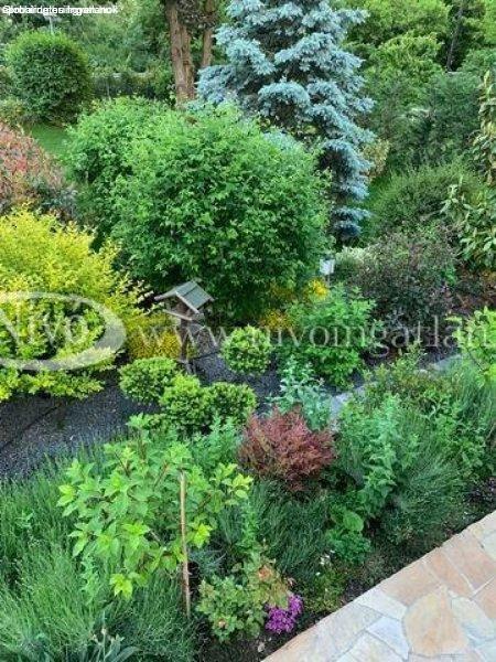 több mint 100 féle növénnyel beültetett (mediterrán növények, ritka fák,