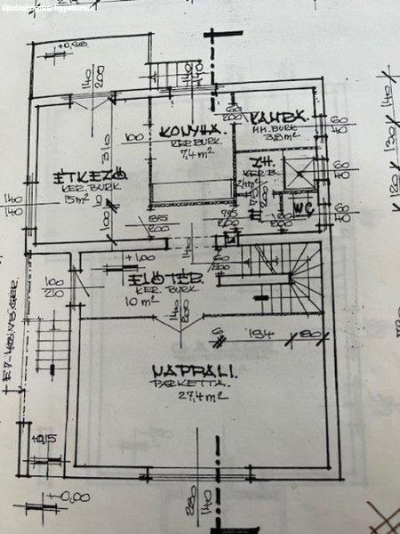 szobából két hálószoba kialakítható,fürdőszoba,külön wc.Emeleti szinten 8 nm