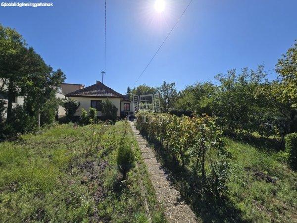 kerttel, gyümölcsfákkal, felújítható házikóval és részben kiépített közművekkel