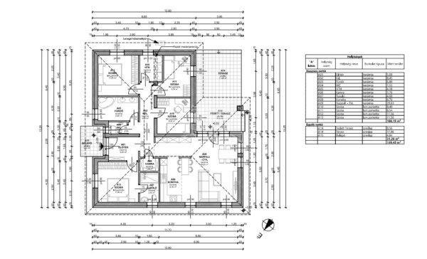 nettó 108,19 m2 lakótérrel, 683 m2 körülkerített teleken épül.Helyiségei: