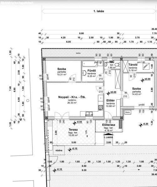 WC(1,9m2), tároló(5,18m2), valamint 15 m2 és 3,89 m2-es terasz.Az ingatlanhoz