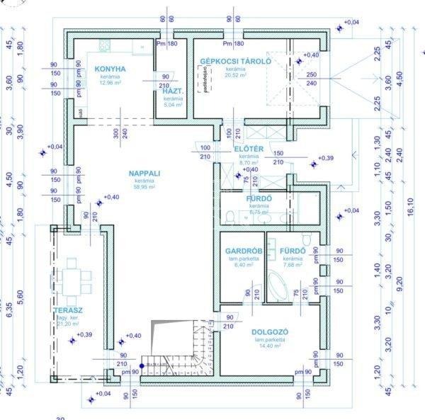 m˛ ? Háztartási helyiség: 5,04 m˛ ? Előszoba: 8,7 m˛ ? Gardrób: 6,4 m˛ ? Szobák: