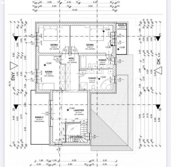 isFürdőszobák: 4 fürdő + külön WCTerasz: 21,2 m˛Erkélyek: 16,23 m˛ és 7,53