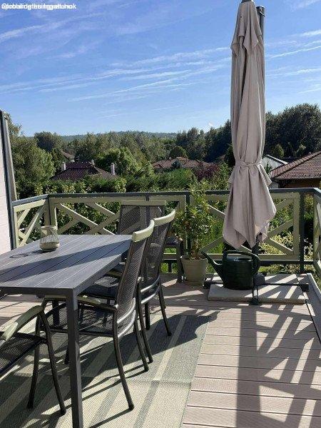valamint elegáns fürdőszoba.Kültéri extrák:déli tájolású, napfényes terasz a