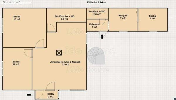 szint: Nappali + 2 szoba, amerikai konyha, nagy fürdő káddal és zuhanyzóval -