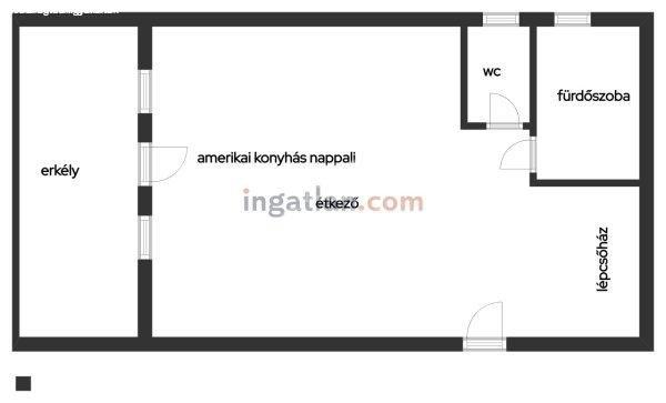 amerikai konyhás nappalival, fürdőszobával és külön WC-vel. A nappaliban