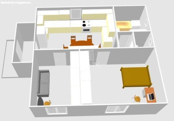 alapterülete 63nm (+ 5 nm fedett terasz) melyben található:- 2 szoba,-