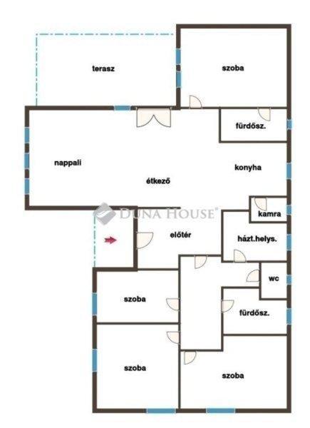 nappali + 4 külön hálószoba 2 fürdőszoba háztartási helyiség kamra