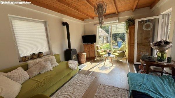 melléképületekkel -garázzsal- ,termő gyümölcsfákkal és akácossal rendelkező