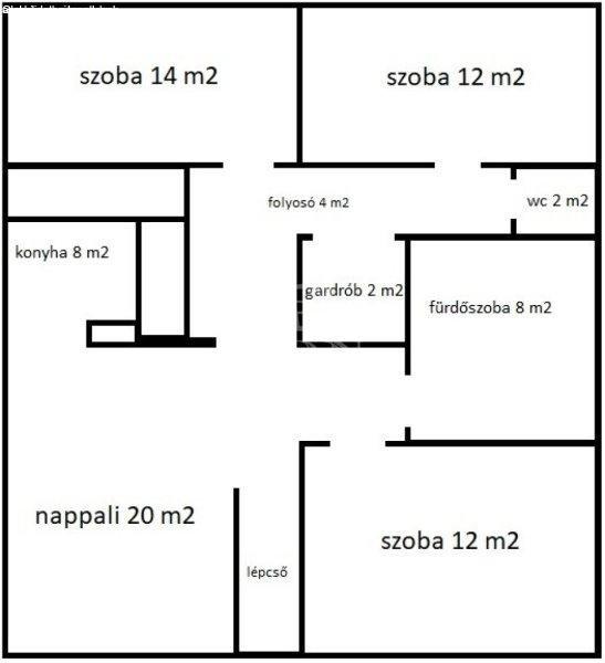 m2Helyiségek: fürdő/WC, WC, amerikai konyha-nappali-étkező, 1 + 2 fél szoba,