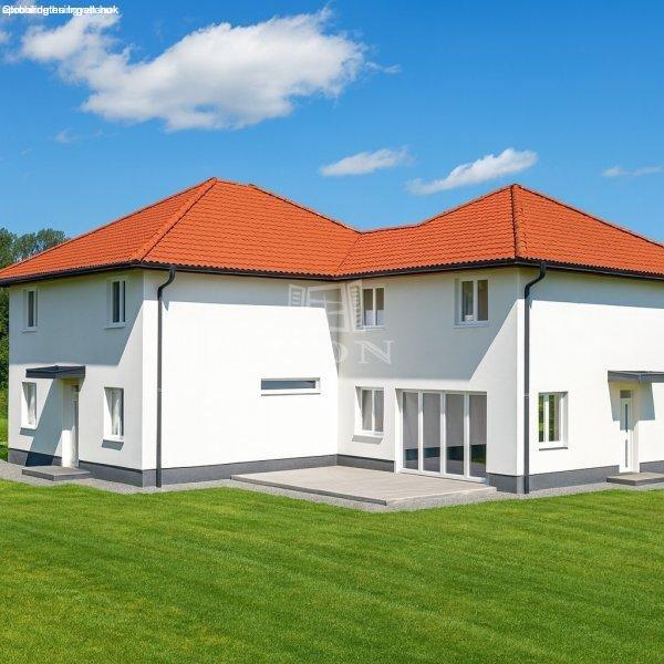 fürdőszobás, új építésű, kulcsrakész ikerház, 30 m˛ terasszal és 540 m˛ saját