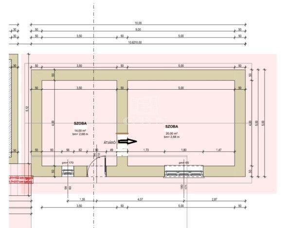 birtokkal.Az épület első, tégla részében 53 m2-en kialakításra került egy