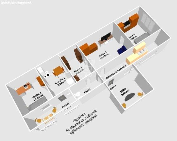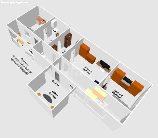 alapterülete 67,44nm, melyben található:- 4 szoba,- 1 fürdő,- 1 konyha,- 1