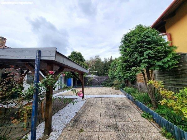 jutunk be. Az udvarban 1 tároló, 20 m2-es garázs, fedett dupla kocsibeálló