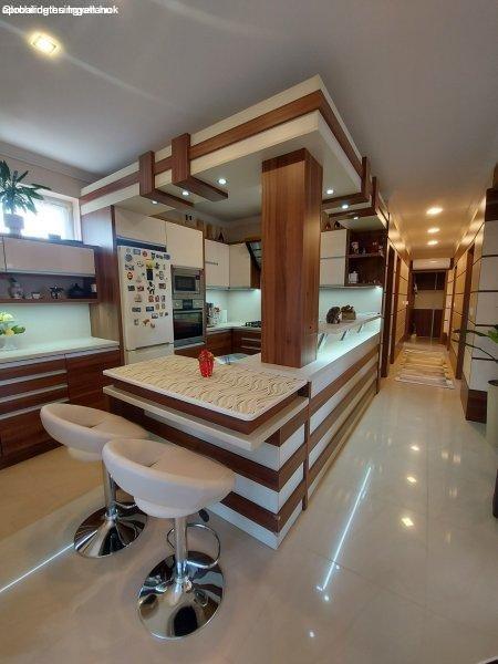 padlófűtés, - klíma,- riasztórendszer,- 2 garázs. Élettér: 3 szoba, konyha +