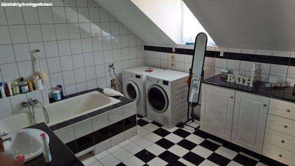zuhanyzós, mindkettő dupla mosdóvalFedett terasz 12 m˛-en és 120 m˛ privát kert,