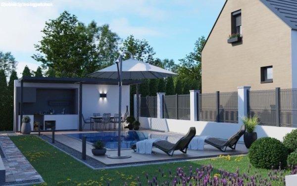 ajtók-Kültéri 3x8 m medence és esztétikus szaletli-Hangulatos, tágas