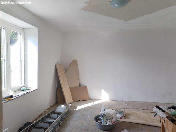 elvégzett munkák: ereszcsatorna csere, belső vakolás, új műanyag nyílászárók,