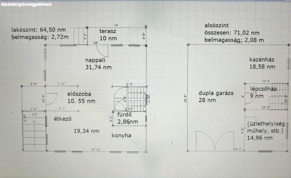 nyílászárókFöldszint: dupla garázs, 14 m˛-es multifunkciós helyiség,