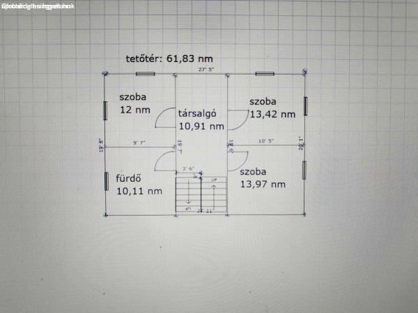teraszkapcsolattal, étkező és konyhaTetőtér: 3 különnyíló szoba, társalgó és