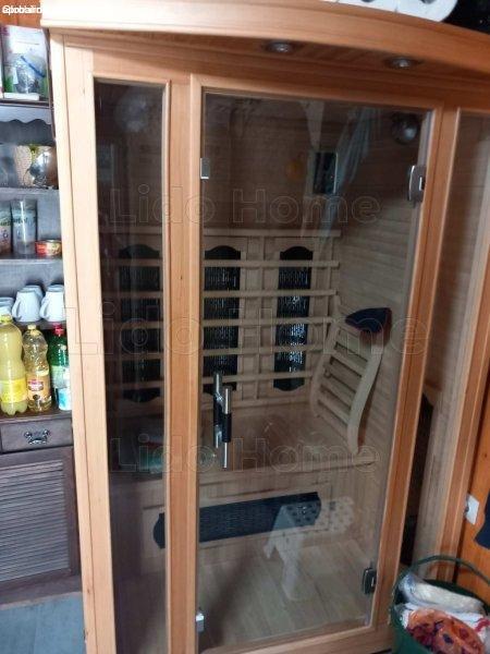ablakon-szauna beeépítve a nappaliban-fűtési rendszer H-tarifás,, villanyfűtés