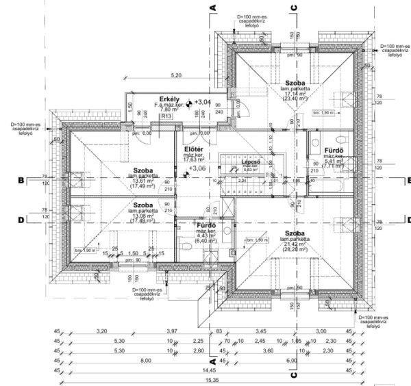 m˛Tetőtér ? 92,72 m˛:4 hálószoba (13?21 m˛, bruttó: akár 28 m˛)2
