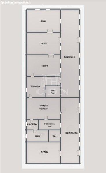 bútorzattal együtt értendő.Helyiségek és elrendezésAz ingatlan hosszanti