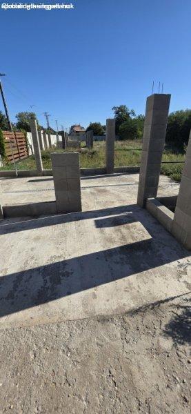 vasalt beton alapja elkészült, vasalt beton pillérezve, csatornával előkészítve.