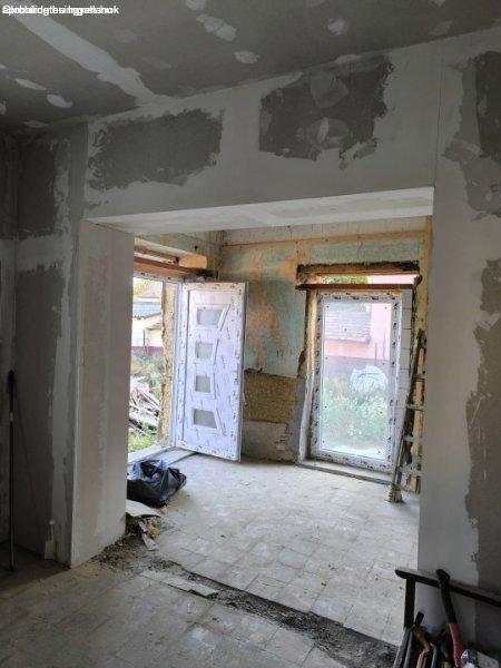 ablakok, valamint a bejárati ajtó cseréje megtörtént, a belső gipszkartonozás 95