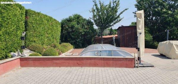vízkezeléssel, medencefedéssel4 állásos fedett kocsibeálló, elektromos