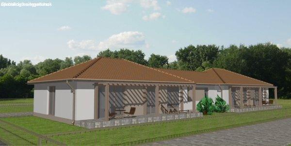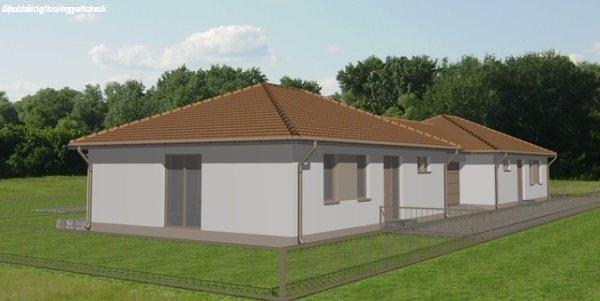 földszintes, nappali + 3 szobás, garázzsal rendelkező ikerház-lakásokat,