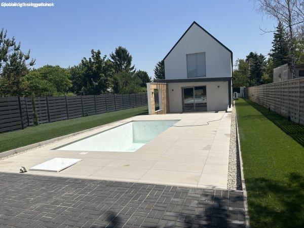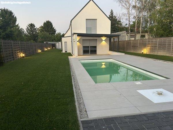 mély medencével. Motoros kapu, video kaputelefon, kamerarendszer, riasztó,