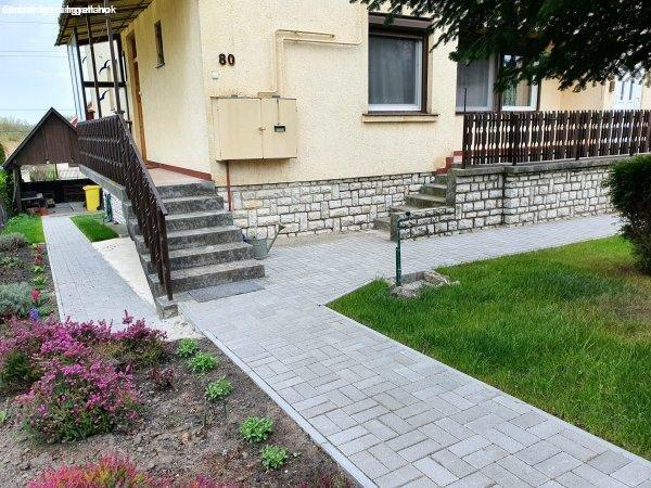 kerthasználat is tartózik. I.lakás 120m2, két szoba + nappali, konyha - étkező,