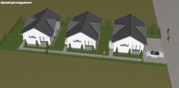 házat, saját, körbekerített telek résszel. Az ingatlanok kialakítása megegyezik,