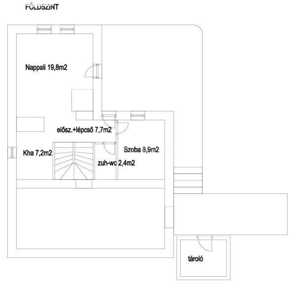 ajtókkal, felülvilágítássalFöldszint: nappali + étkező (19,8 m˛) + konyha (7,2