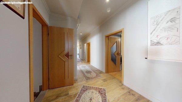 télikert, duplagarázs. Szuterén szinten vendégszoba, fürdőszoba-mosókonyha,