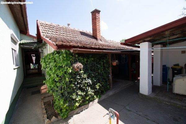 hasznos alapterületű, 3 szobás (21,54; 14,33; 7,55 m2) lakóház, + melléképület,