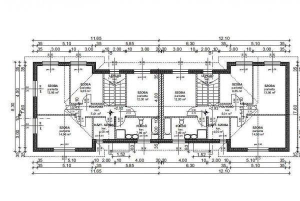 fele, ami teljes belmagasságú szint, nem tetőteres, saját elkerített 300 m2-