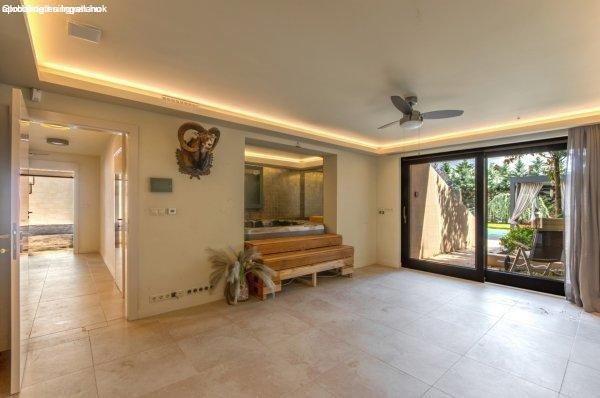 motornak való garázs, mosókonyha , gardróbok, kertkapcsolatos wellness rész