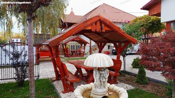 nádfedeles kiülő, 2 állásos fedett kocsibeálló, több autó számára alkalmas