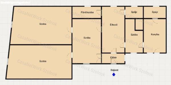 étkező, konyha, 2 fürdőszoba, 2 spájz, és 4 egész szoba- a területen egy kb. 60