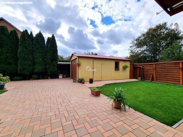 pedig parkosított. Területén 25 m2-es garázzsal. Az öntözés automata