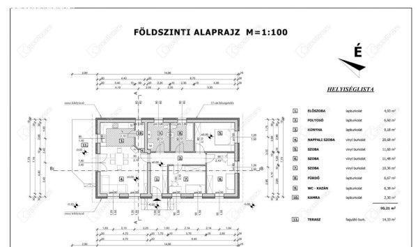 teraszHelyiségek: nappali + amerikai konyha, 3 hálószoba, kamra, fürdőszoba,